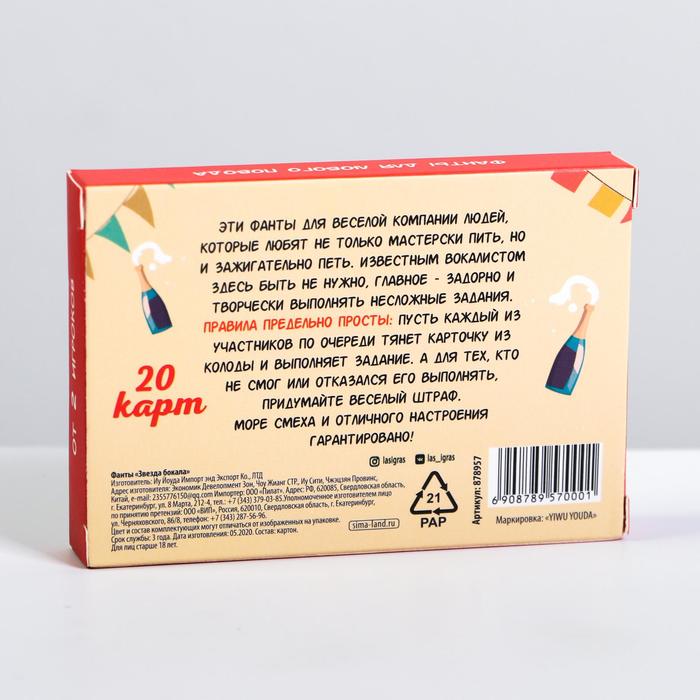 Купить игра для компании "фанты звезда бокала" 20 карт от 120 руб. с доставкой до пункта выдачи в Томске. Интернет магазин ДекаМаркет. Оплата при получении.